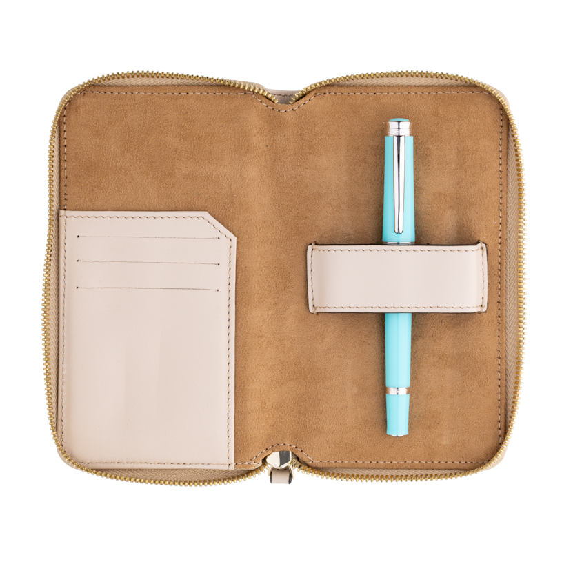 Etuiurile din piele tip portofel (bej si negru) sunt confectionate din piele naturala.