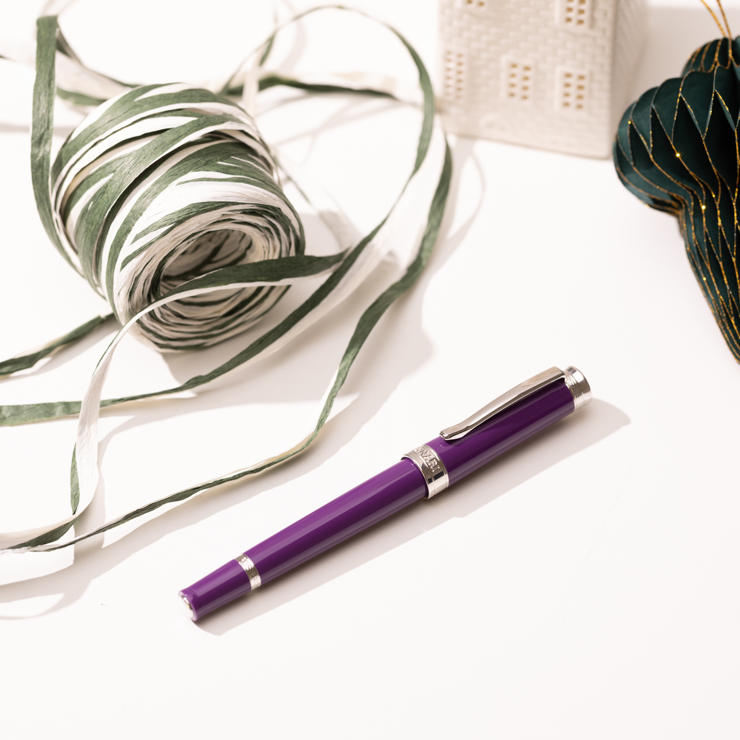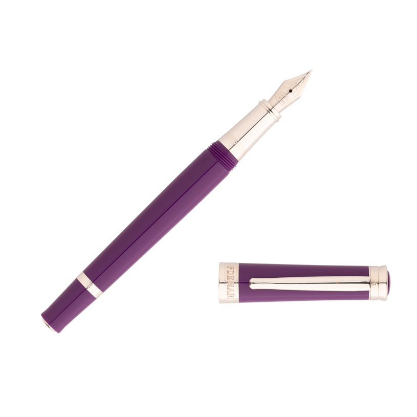 Capacul se închide prin înfiletare. Vă rugăm să nu trageți! Corpul stiloului este confecționat din rășina acrilică. Componentele metalice sunt confecționate din alamă și sunt placate cu rodiu.