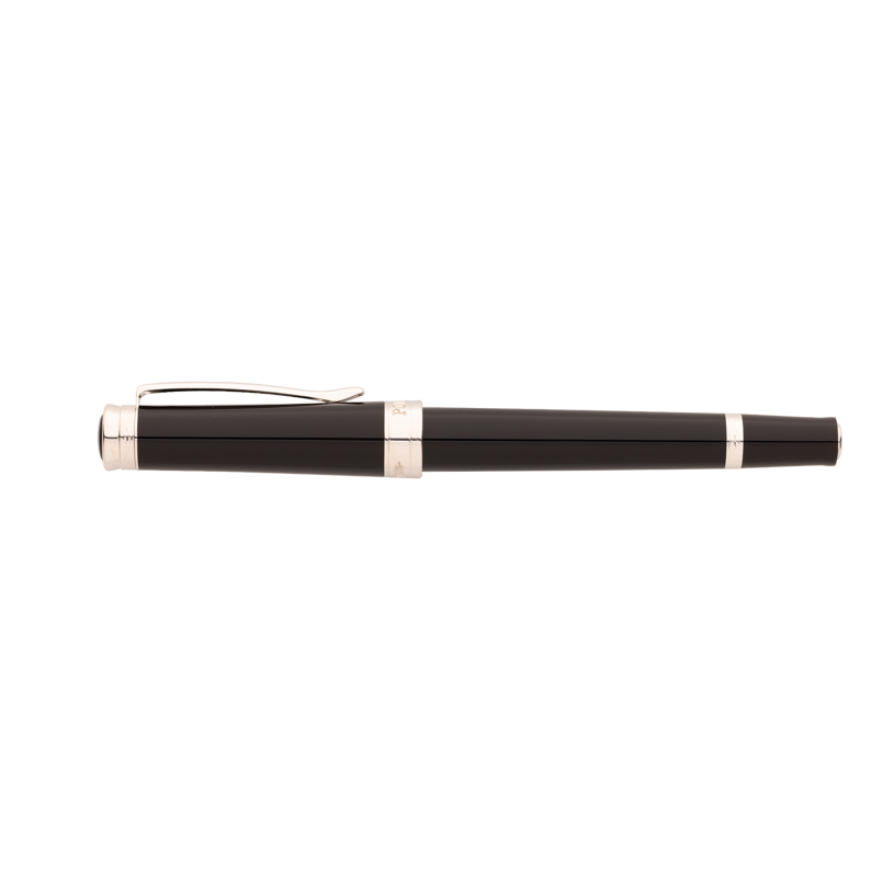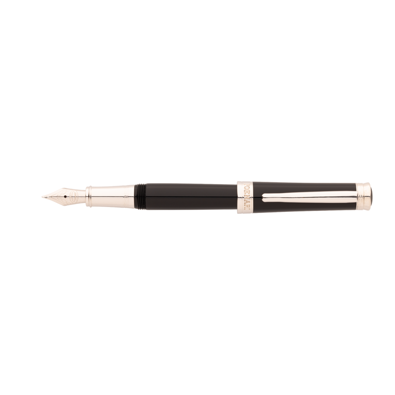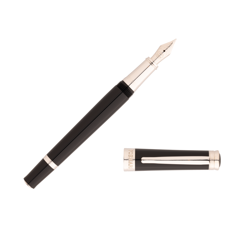 Capacul se închide prin înfiletare. Vă rugăm să nu trageți! Corpul stiloului este confecționat din rășina acrilică. Componentele metalice sunt confecționate din alamă și sunt placate cu rodiu.