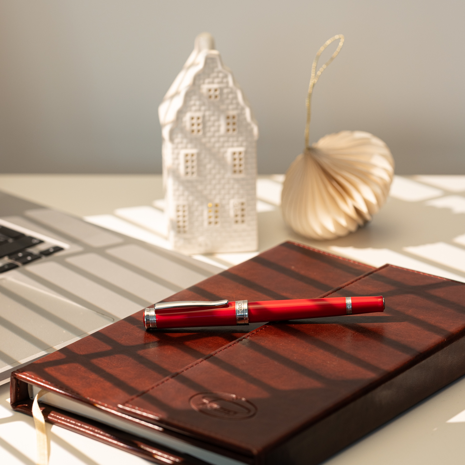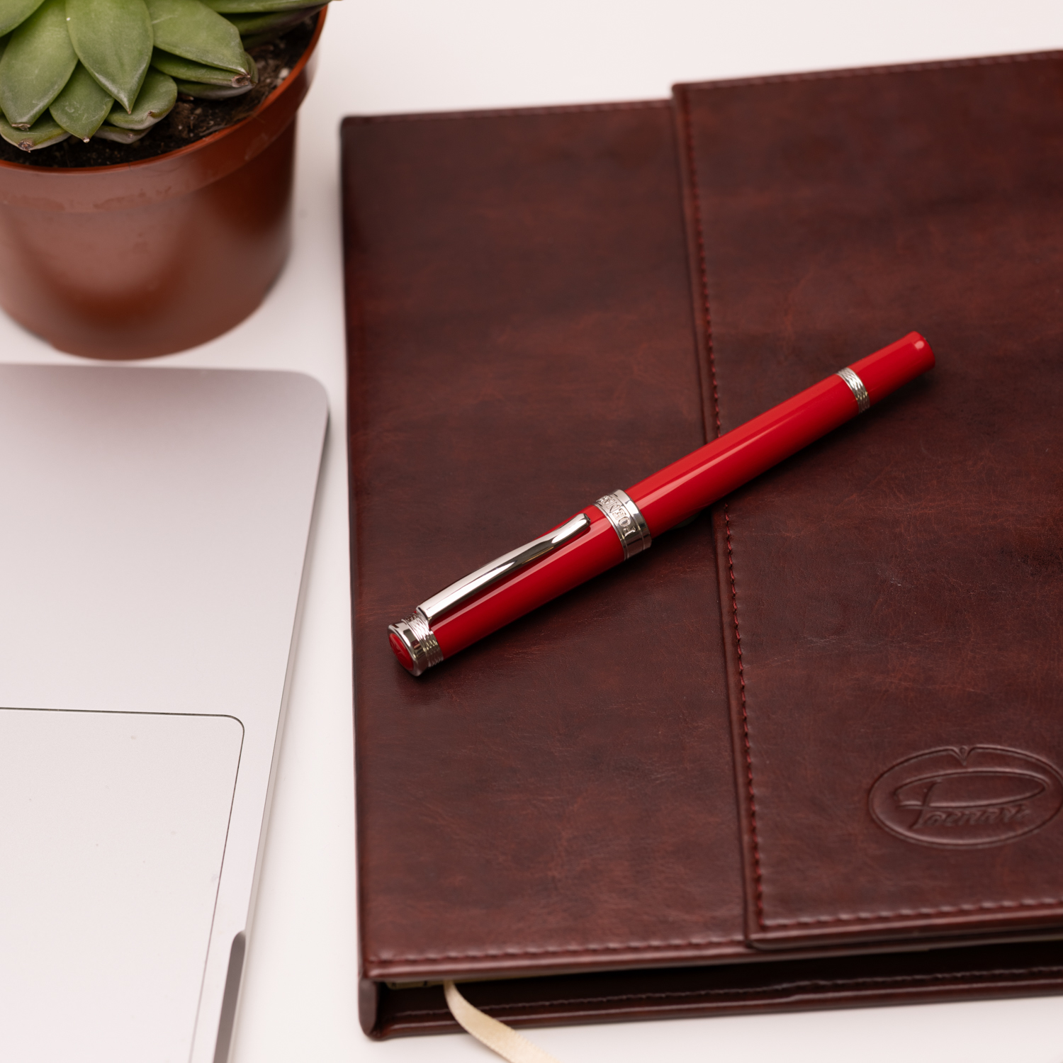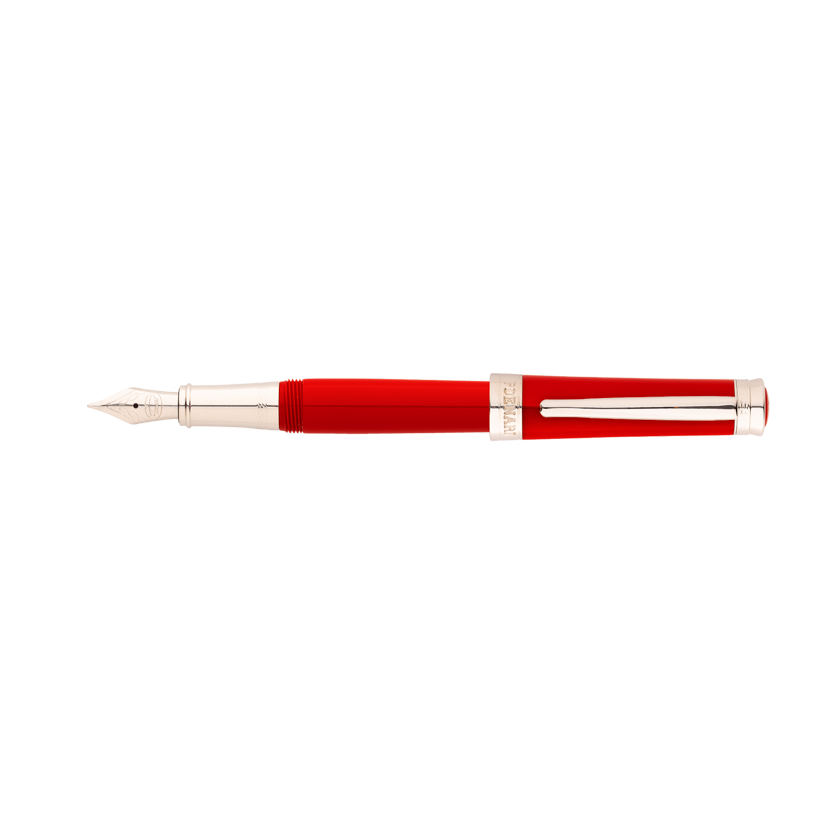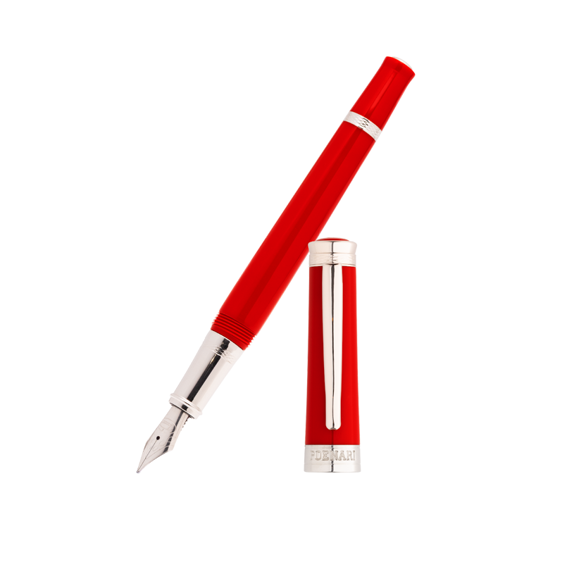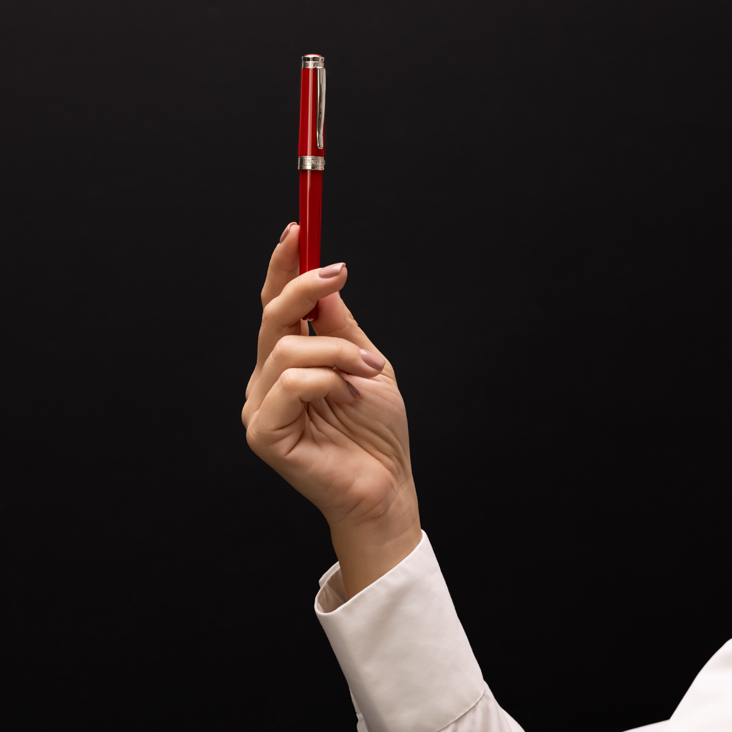 Capacul se închide prin înfiletare. Vă rugăm să nu trageți! Corpul stiloului este confecționat din rășina acrilică. Componentele metalice sunt confecționate din alamă și sunt placate cu rodiu.