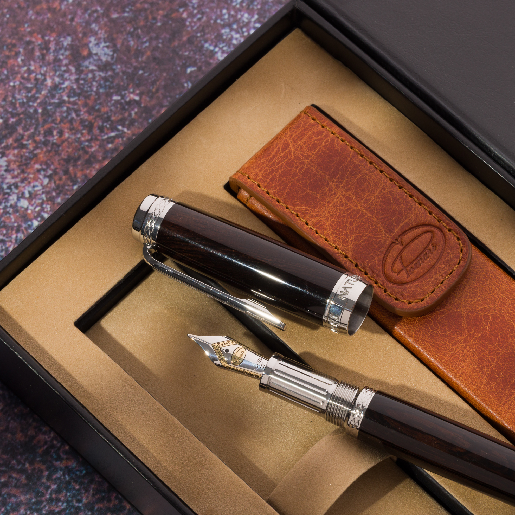 Componentele din inox adaugă un plus de durabilitate și rafinament și creează un contrast modern cu aspectul cald al lemnului. Penița stiloului este realizată din oțel inoxidabil sau din aur și oferă un flux de cerneală constant, o alunecare naturală pe hârtie și un control foate bun al literelor.