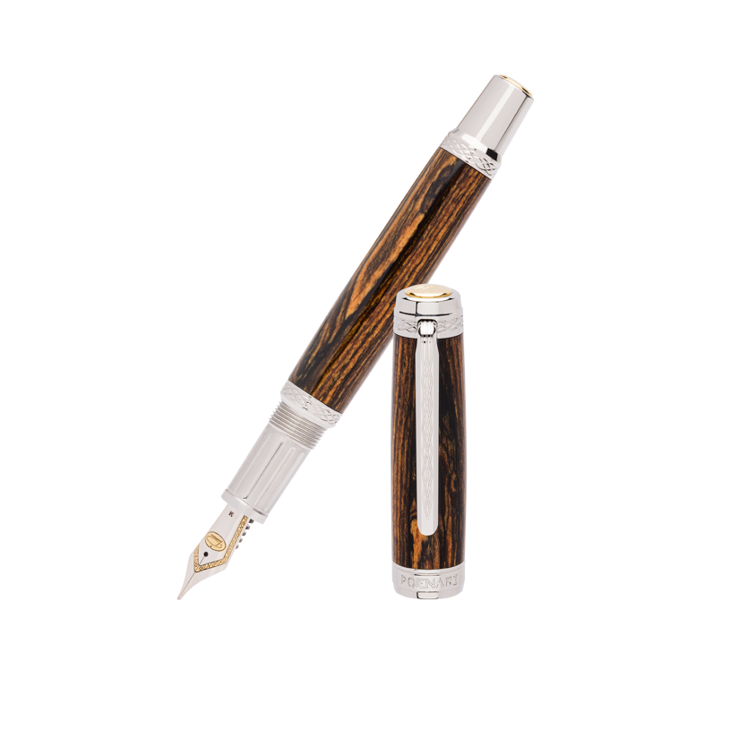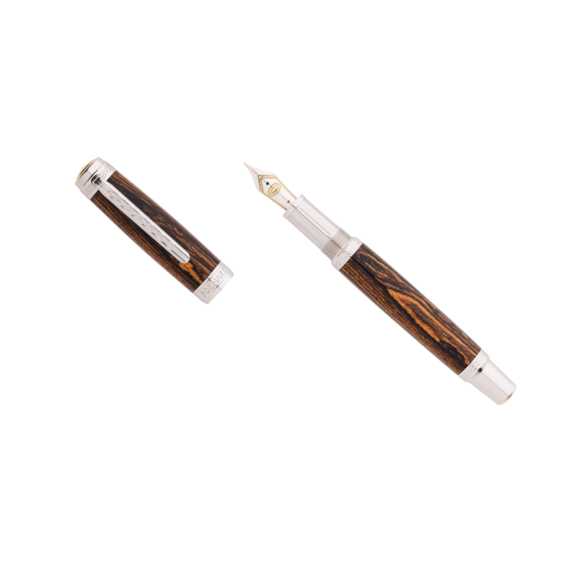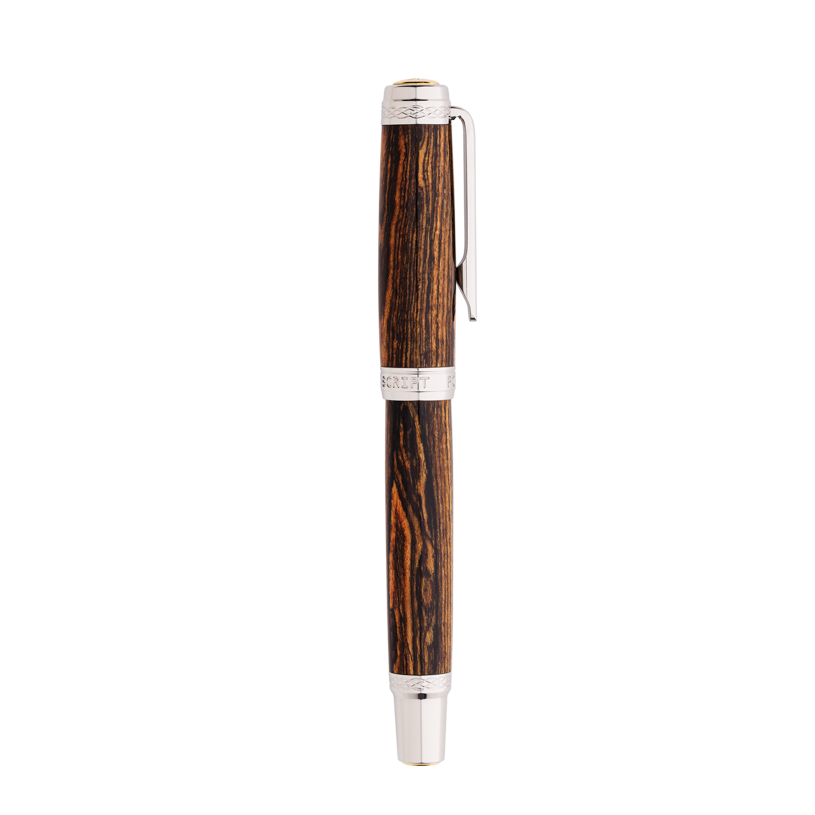 Acest stilou este o piesă unică, realizată prin îmbinarea armonioasă dintre naturalețea lemnului și eleganța componentelor metalice din inox. Fiecare bucată de lemn exotic este atent selecționată, prelucrată și apoi finisată manual pentru a evidenția fibrele și textura autentică, transformând fiecare stilou într-o operă de artă cu personalitate proprie.