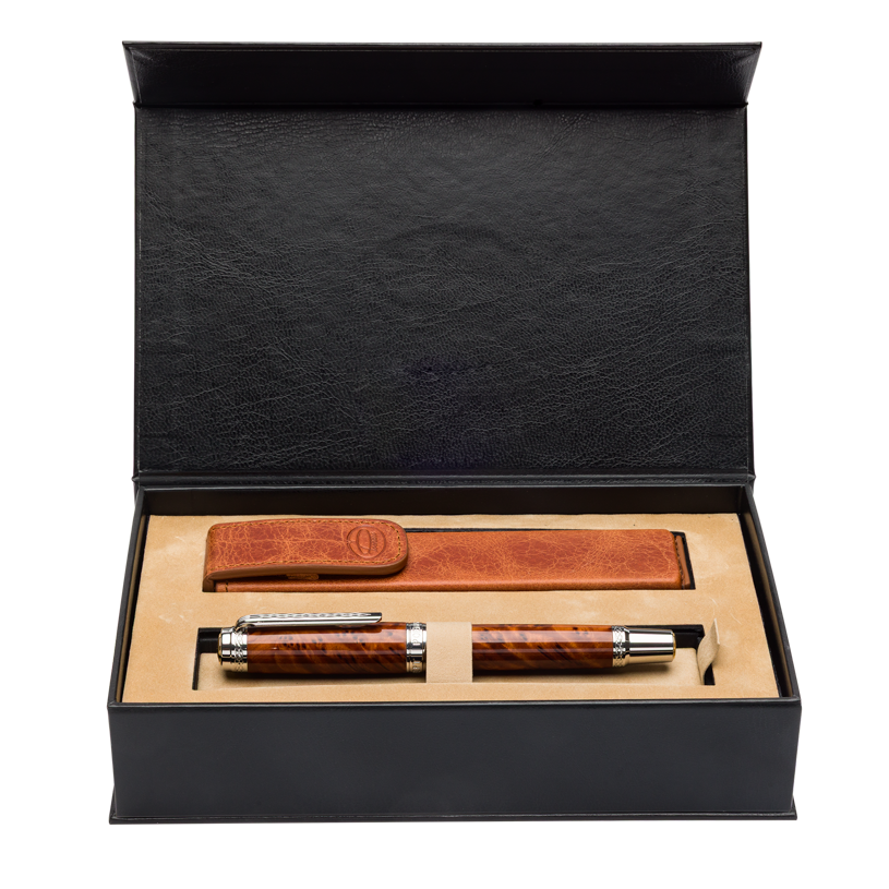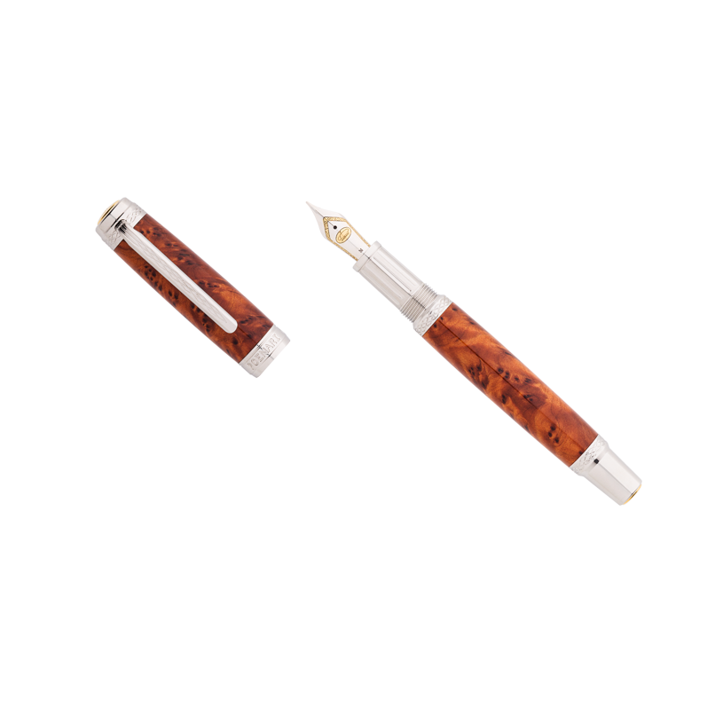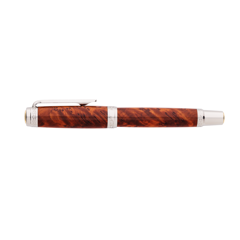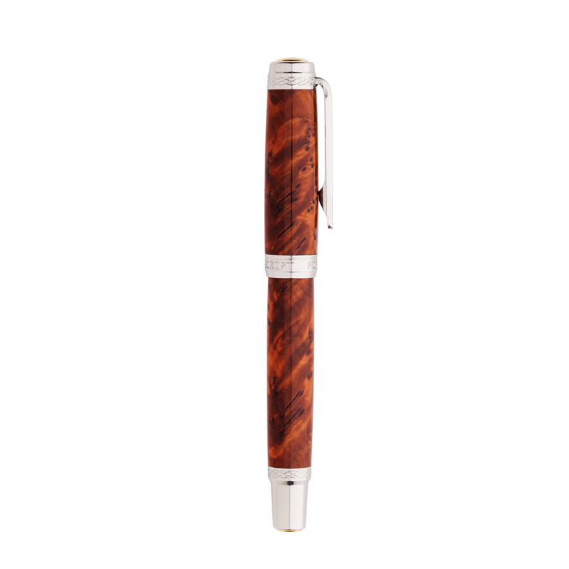 Acest stilou este o piesă unică, realizată prin îmbinarea armonioasă dintre naturalețea lemnului și eleganța componentelor metalice din inox. Fiecare bucată de lemn exotic este atent selecționată, prelucrată și apoi finisată manual pentru a evidenția fibrele și textura autentică, transformând fiecare stilou într-o operă de artă cu personalitate proprie.